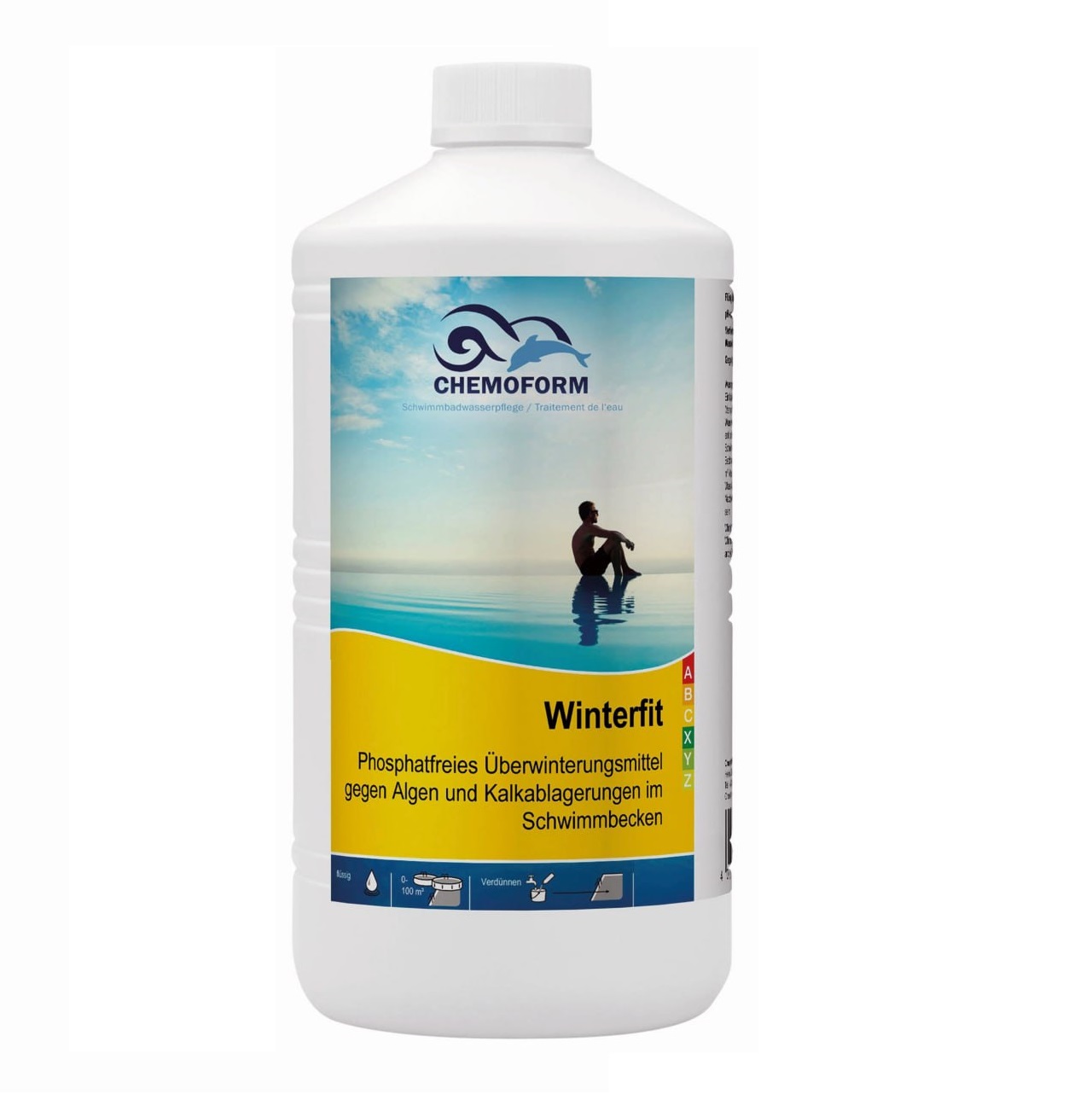Зимний консервант для бассейнов против появления водорослей и известняковых образований на основе банзалкониумхлорида.